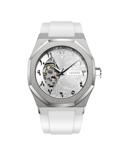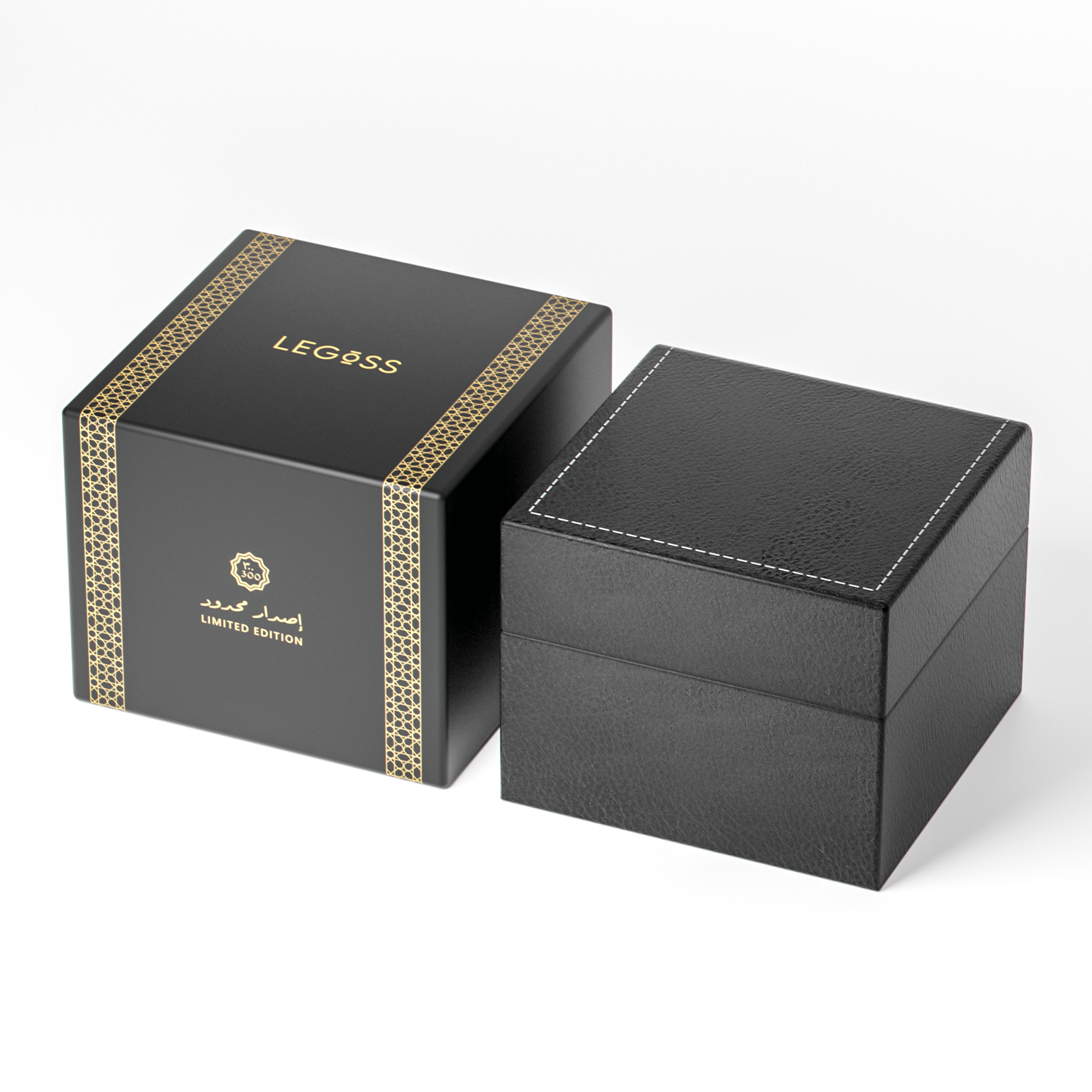 تميز بإطلالة فريدة تعكس هويتك وثقافتك. ساعة يد استثنائية تتميز بميناء مزين بأرقام الخط العربي الفاخرة.