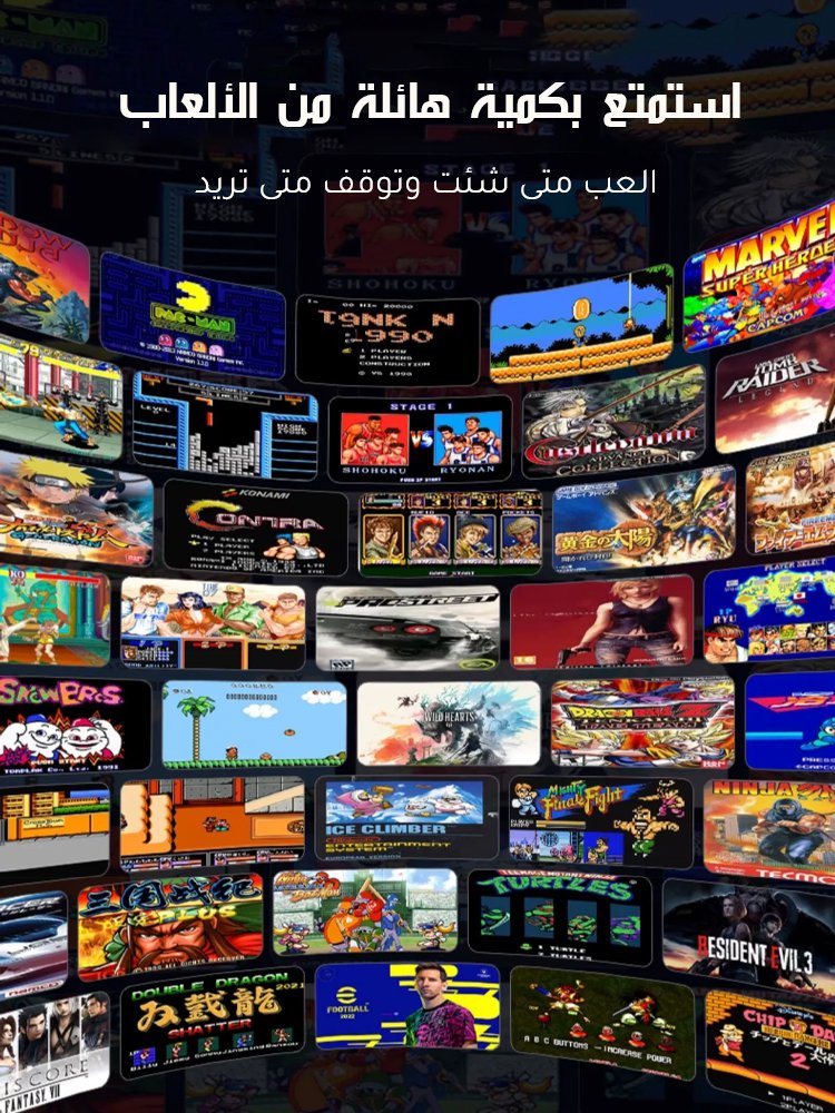 - **مكتبة ألعاب ضخمة:** يحتوي على آلاف الألعاب الكلاسيكية الجاهزة للعب فوراً.
