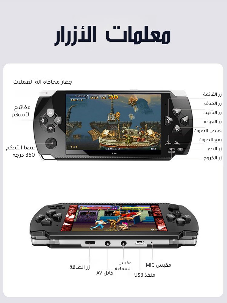 استعد لذكريات الطفولة مع أقوى جهاز ألعاب محمول. شاشة عملاقة بدقة فائقة، آلاف الألعاب المدمجة، وتصميم مريح لساعات من المتعة المتواصلة أينما كنت.